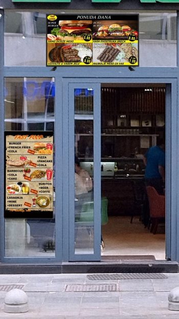 Svi su upoznati i vidjeli su tzv. DIGITAL SIGNAGE sisteme – to su sistemi reklamiranja, informisanja, postavljanja atraktivnih menija, raznih ponuda itd. na digitalnim displejima. Primjer jednog takvog restoranskog digitalnog menije je na slici iznad.